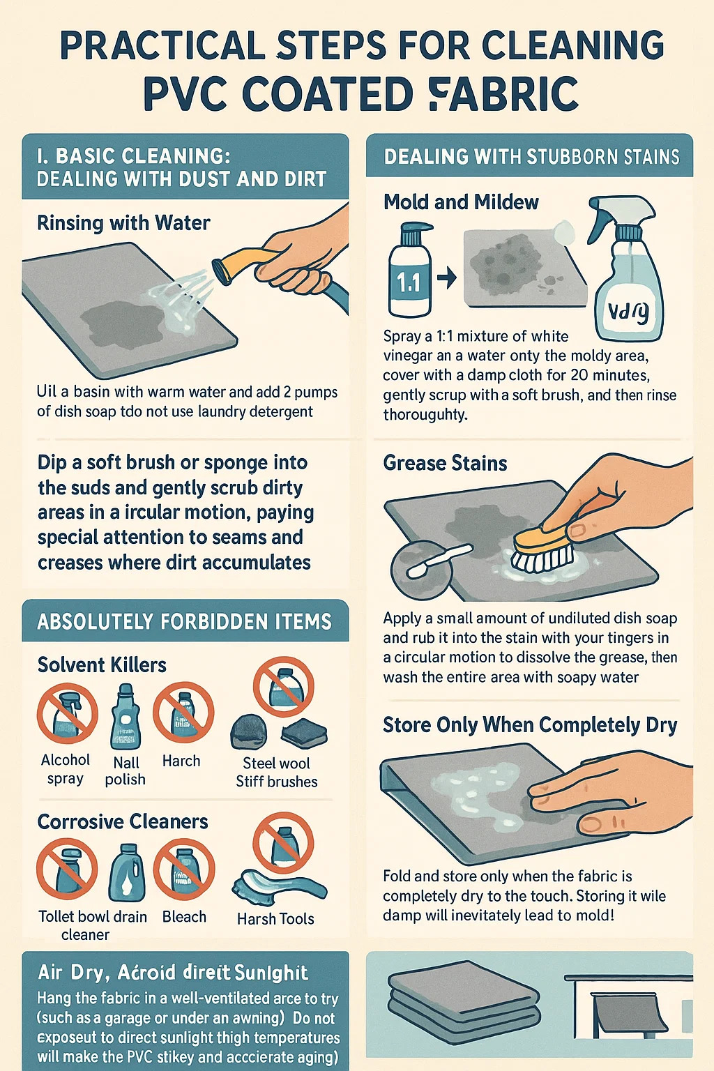 Вот практические шаги по очистке Ткань с ПВХ-покрытием :