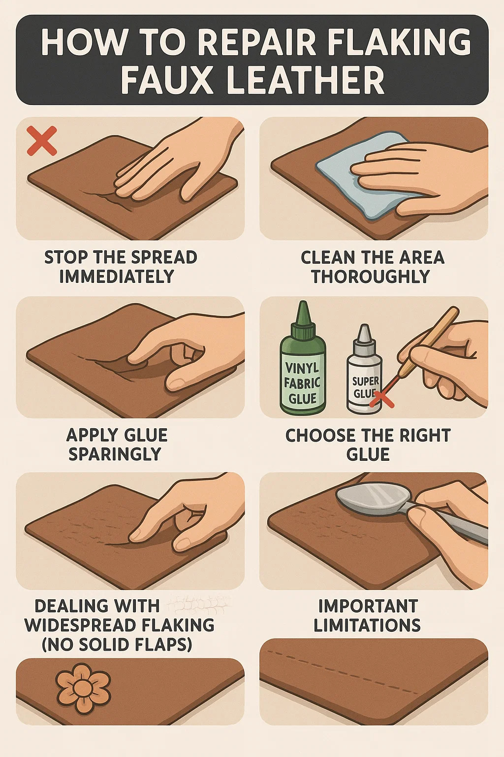 Не постоянное исправление: этот ремонт склеивает существующий рыхлый материал. Это не предотвратит отслаивание других участков в дальнейшем, и отремонтированное место может со временем снова подняться, особенно при интенсивном использовании или сгибании.