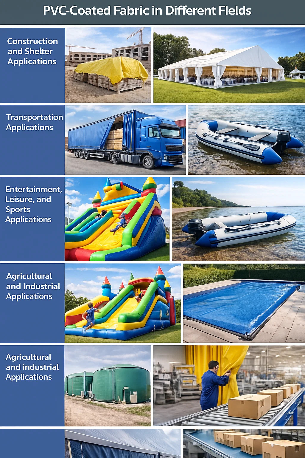Вот некоторые из основных применений ткани с ПВХ-покрытием в различных областях: